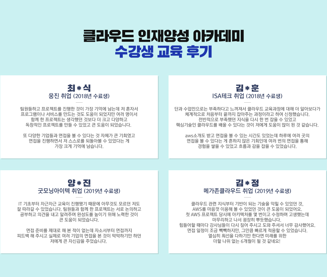 교육기간 내 회원관리, 학습설계 | 학생 이름, 성별, 이메일 주소, 휴대폰 번호 | 회원 수료 및 환불 후 6개월까지 |